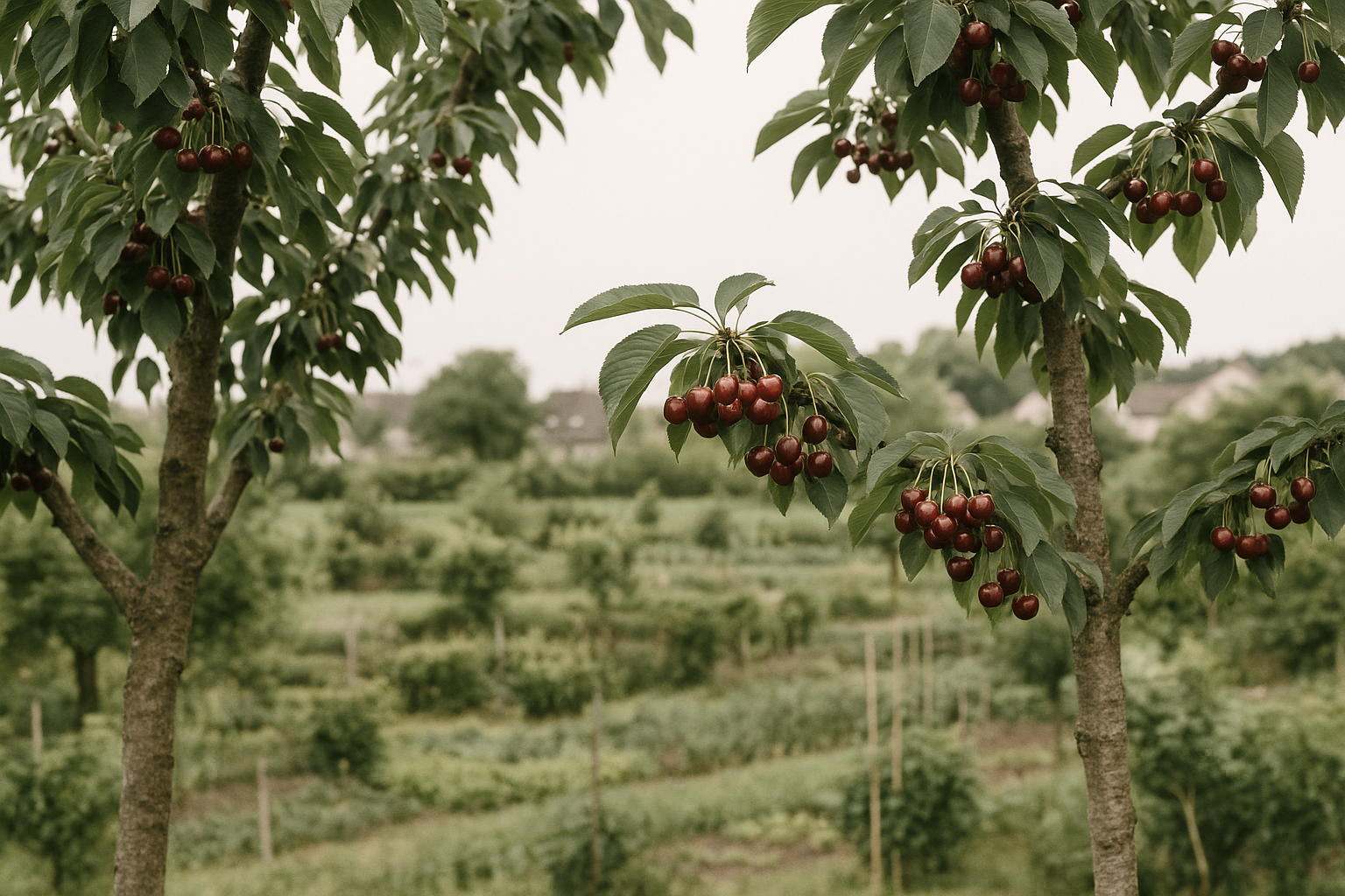 „Schwarzkirsche“ – ein Begriff, der nicht etwa eine einzelne Sorte beschreibt, sondern die klassischen, dunkelroten Süßkirschsorten umfasst, die seit Generationen für hochwertiges Kirschwasser verwendet werden. In unserem Fall sind es vor allem Benjaminler und Dollenseppler, traditionelle Sorten aus dem südlichen Baden, genauer aus Lagen rund um Lörrach im Markgräflerland. Die milden klimatischen Bedingungen und fruchtbaren Böden ermöglichen es, dass die Kirschen optimal ausreifen und ihre charakteristische, tiefgründige Fruchtfülle entwickeln. Nach sorgfältiger, selektiver Ernte und präziser Vergärung destillieren wir diese Früchte zu einem klassischen Kirschwasser, das bewusst klar – also ohne Fasslagerung – seine typische Schwarzkirsch-Aromatik unverfälscht und elegant entfalten kann.